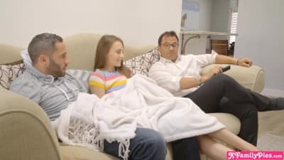 Naughty stepsiblings sucking and fucking with dad right there! Especially teen Kyler Quinn loves the feeling of almost getting caught!