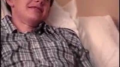 This young man has a big hard dick and he can't wait to wank it off in bed and cum for everyone in front of the camera