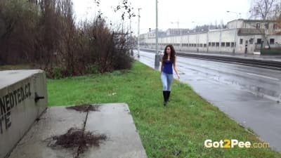 Urine squirts from pretty girls peeing in the street