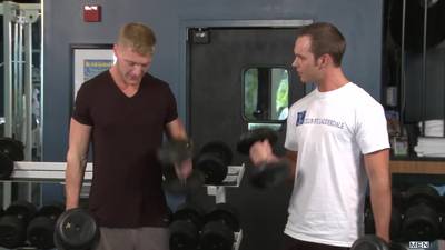 Gavin Waters and Devin Adams don't waste any time as they fuck together in the gym and cum hard