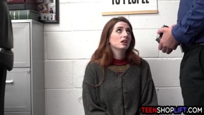 Shaking teen redhead thief caught red handed by a dirty mall cop who knew exactly what to do with girls like her and she did not like it