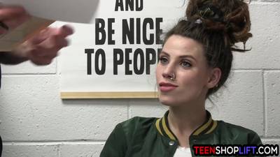 Feisty big tits teen thief Indica Flower got busted stealing a whole bunch of dildos from a store but the Lost Prevention officer knew what to do!
