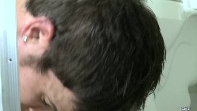 Tyr Alexander and Bo Dean can't wait to fuck so they go to the public bathroom and fill each others asses