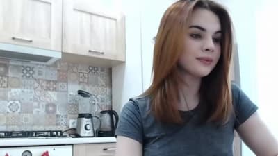This redhead bitch is showing her nice tits and round ass whilst wanking off in her kitchen for you