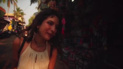 She's a brunette who loves to travel, especially when she goes to India! She loves to be naked in the sea and films everything!