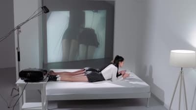 Two beautiful lesbians use a strap-on