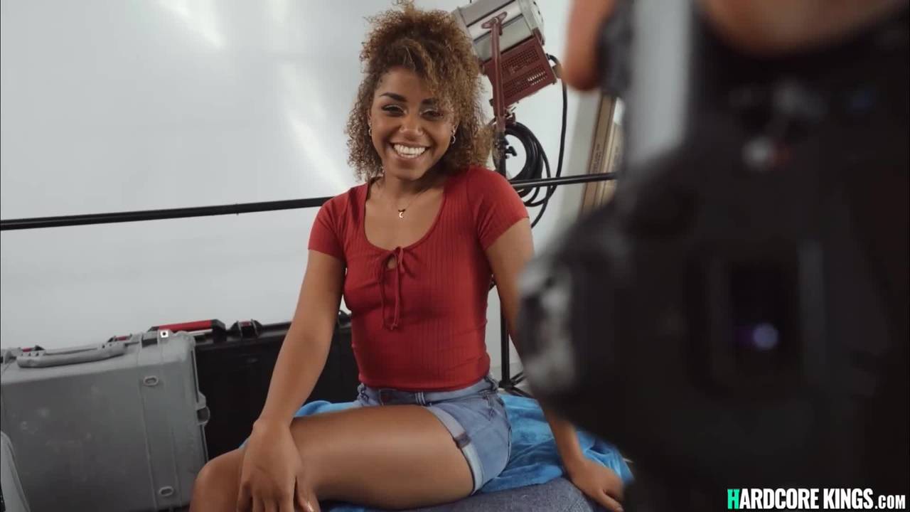 Black photographer Zeus picks up hot curly brunette ebony babe Milu Blaze and in his studio with big black cock fucks her mouth and pussy POV