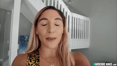 Big ass hot blonde petite babe Abella Danger seduces JMac with twerking then POV sucks his huge dick and rides him on the leather couch