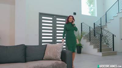 Young personal assistant Jordi El Nino Polla gives foot massage to rich redhead huge tits MILF Monique Alexander then fucks her legs in pantyhose
