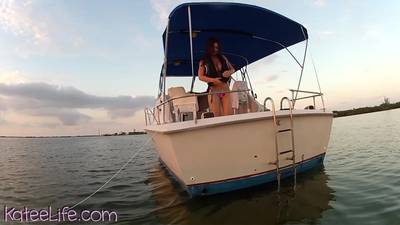 The spectacular Katee, takes a boat ride and paddles in the lake with her big breasts in contact with nature.