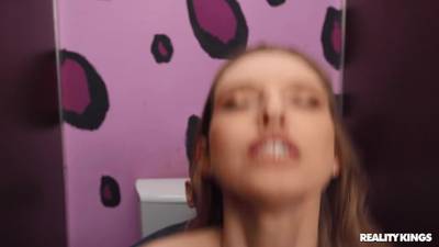 Jayla saw a guy masturbating in the ladies room and fall for him after she saw his big cock, joining him in the toilet and took care of his dick