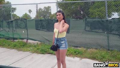 The bang bus fallowing a sexy cute girl on the street convincing to get in and get fucked in behind real good while the van is moving