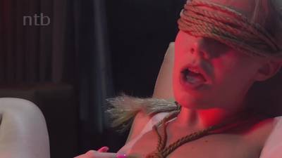 After she enjoyed being tied up and blindfolded she got really turned on and her excitement doubled when she saw those two black studs ready to fuck her
