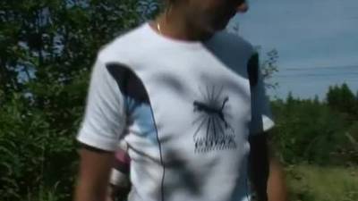 These two twink boys enjoy wanking off as they are outside and horny as fuck until they are cumming together