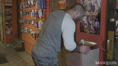 Sexy male pornstar Ryan Bones feels the impulse of fucking a fan he caught masturbating in the sex shop.