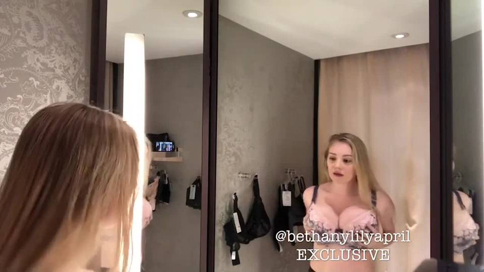 Sexy blonde amateur star, dreamgirl Bethanylilya, is inside the fitting room, measuring bras on her juicy boobs. She looks hot and those tits are to die for!