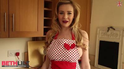 Beth Lily, plays the role of the naked chef in the kitchen. She shows off her big boobs and teases you.