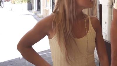 This blonde Asian is horny and it shows in her nipples as they're hard and this guy is focusing on them in this outdoor amateur video