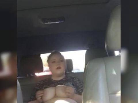 Masturbating on the back seat of the car and using her sextoy to reach her climax as she is recorded