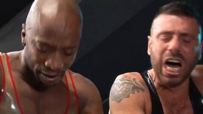A big black guy and his white partner dominate and fist fuck gay Sylvain, and then they piss on him..