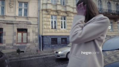 The beautiful Ukrainian Alina shows off her small tits and sexy pussy in shower and at public places of her city.