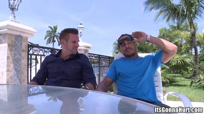 This white dude is eager to try some thick black dick as he has it all the way inside his ass, stretching him open before a cum facial