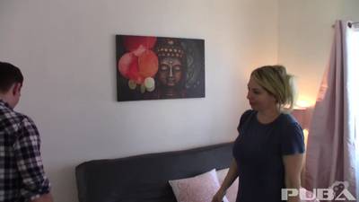 Kiki D'Aire fucks the cock of Jason Michaels on the sofa as he can't wait to make the most of her fat ass