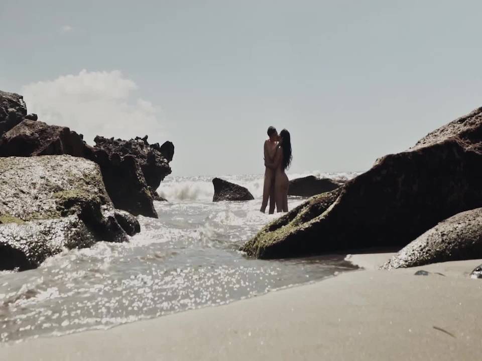 Naked and hand in hand, they walk and kiss on a beach. Julia De Luca and her summer fling, kiss and fuck in multiple positions, like doggystyle, passionate.
