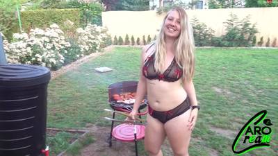 This blonde is fucked by his dick as he is rock solid for her fat ass while in front of the webcam
