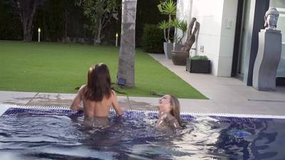 Hot lesbians, decide to pass an afternoon by the pool, tasting each other's pussies and scissoring!