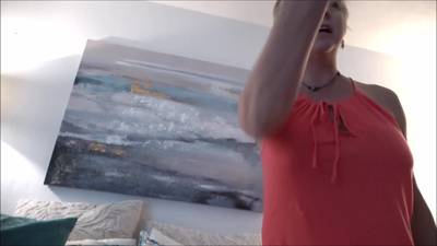 This pretty MILF is going to come into the bedroom, she watches him wank, as she shows her tits and gets fucked.