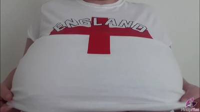 This Englishwoman, is going to show off her huge breasts up close, for our pleasure. She will touch and oil her tits.