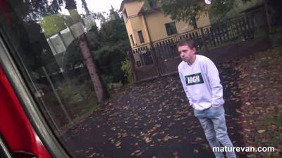 Watch how these two, old and experienced whores in lingerie, allow themselves to fuck a youngest, in the back of a van.