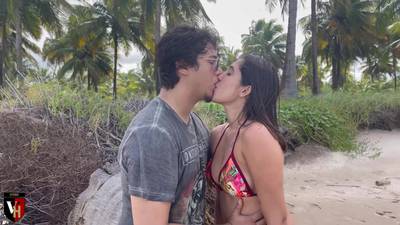 The young slut teases a stranger she met on the beach. She gives him a blowjob and he cums on her breasts.