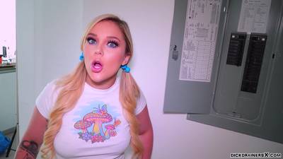 Hot blonde bane with big tits and bubble butt calling the building technicien to fix her TV but ended up having his BBC deep down her throat
