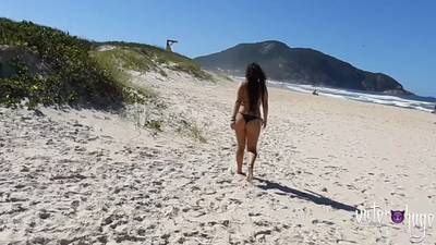 A young, pretty Latina girl is with a friend on the beach, but she meets a cute tourist and gives him a blowjob,