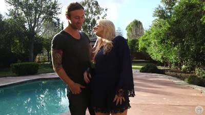 Beautiful blonde and titty, Ashley Fires seduces hunk Chad Alva and takes him inside, to suck and deepthroat every inch of his throbbing dick, with gusto.