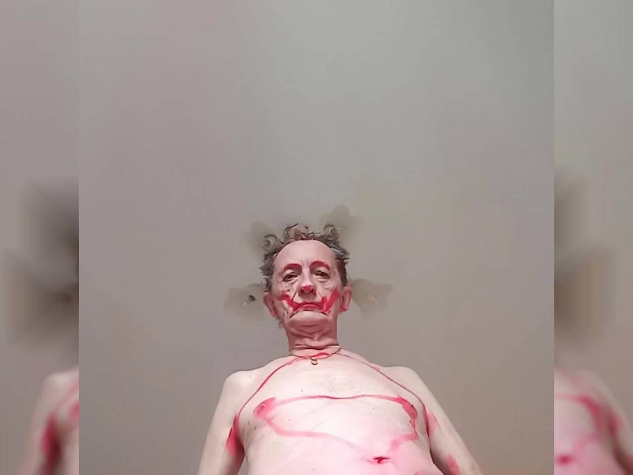 He's an old perverted guy loves to share his kinky life on camera using a lipstick to paint his face and stomach and dances
