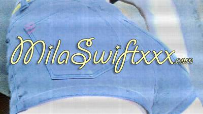 The sweet Mila Swift, our favorite trans blonde, wears white stockings, a pink shirt and a very big dick that she caresses in front of the camera!