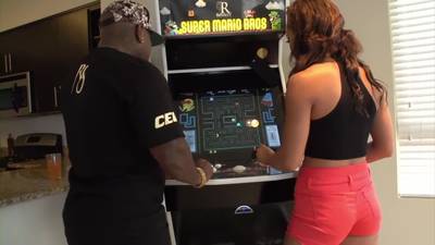 Teanna's horny and calls Rico. He challenges her to a game of Pac-Man, winner takes all. After she's naked he feeds her his big cock and pounds her pussy.
