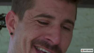 Sean Maygers and Casey Jacks in a hot gay porno video outdoors where anyone can see them fucking each other.
