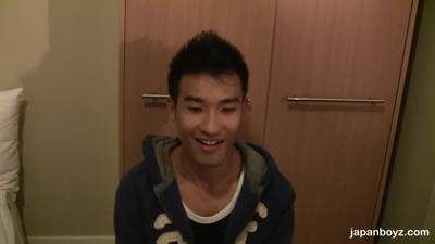 Muscular Asian guy with a pretty face is eager to show us how he fondles his nipples and how he masturbates his cock lying in the bathtub.