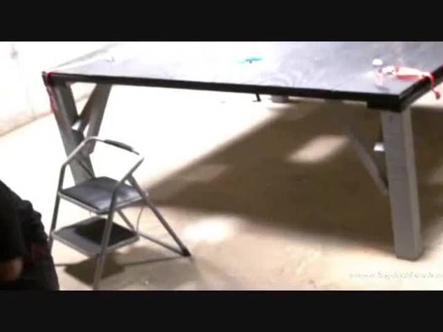 This innocent guy gets tied to the table. He gets dominated and whipped by black transsexuals who fuck him in the ass.