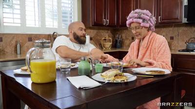 Staying with Xander's grandmother, Sky Pierce isn't allowed to sleep with him. She finds a way to make up for it, at breakfast!