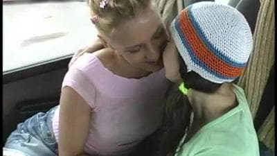 These two beautiful teens are going to take the bus but they really want to touch and lick each other's pussies.