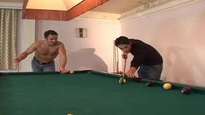 George Vidanov and Michael Lucas were playing pool but soon they get horny and strip down to fuck on the sofa.