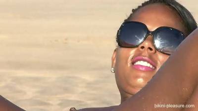 Black beauty Isabella Chrystin, spends time at the seaside and shows off her amazing body in a bikini and then without it. Very sexy pussy!