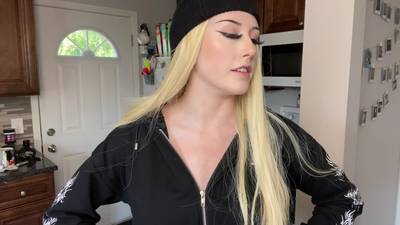 This huge blonde slut is ultra horny and takes out her big dildo to suck and fuck wildly, imagining she is being fucked by a stud!