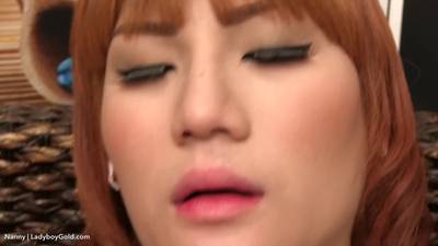 Tranny is feeling horny today. She jerks off her dick and shoves a butplug inisde her butt, deep after toying with it.
