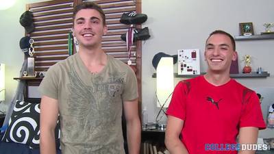 Tyson Pierce he's a little camera shy, but once him and Asher Hawk start to suck dick, he bottoms for the hung male and cums all over!